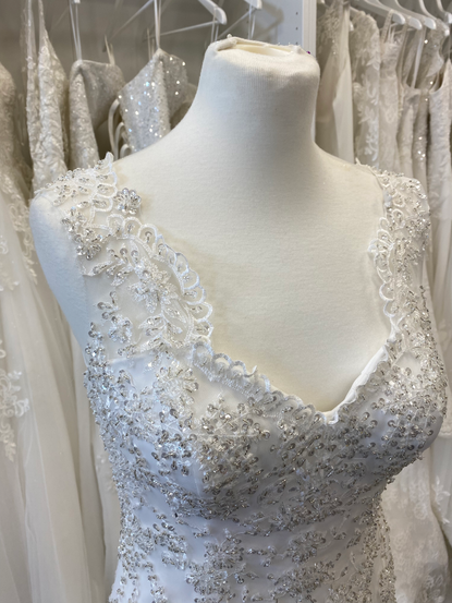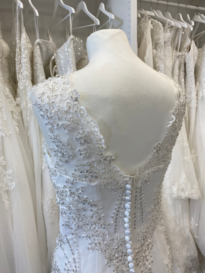There are a million and one ways to customize your gown with Elite Bridal, so I altered this dress and made it strapless to show customers what you can do, hopefully giving them some inspiration. Most custom orders are sketched out and sent to the factory to be made as this is more cost-effective so it was a nice change to be able to make my vision come to life.